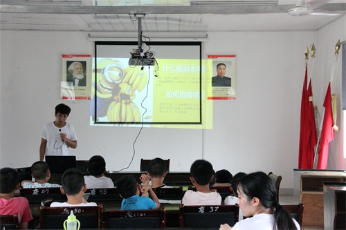 本次活动以“给留守儿童当父母”为主题,旨在让我院大学生志愿者给予他们如同父母般的关怀,使他们在同学们陪伴下开心快乐度过暑假。本次支教活动院团委对选拔的22名同学进行了为期2个月培训,从课程设计,备课,准备素材入手,以“孝宽诚责毅”五字教育、天文、英语、绘画、舞蹈、音乐、手工、体育等方面的课程为主干课程,在课余时间还安排有安全教育、室外素质拓展训练等内容。同学们还利用周六周末和课余时间,辅导留守儿童的暑期作业,陪着他们画画、折纸、聊天,走进他们的生活,致力于丰富他们的暑期生活,使他们有一个快乐的暑假。因为是学生都是留守儿童,同学们每次课后都会送每一个孩子安全回家,给予了“留守儿童”无微不至的关爱。7月14日,同学们在唐庄村的广场中,与孩子们一起举办了一场汇报演出,节目丰富多彩,师生联动频繁,虽然天气较热,但台下村民们都兴致勃勃地欣赏,现场气氛热烈。