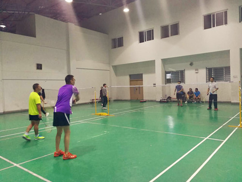 本次比赛分男单、女单、男双、 女双、混双五个项目。我们派出了所有的精兵强将。下午5点我院教工羽毛球队来到三江学院运动馆,所有队员有序的进行准备活动,伸展练习,球性练习十分认真。