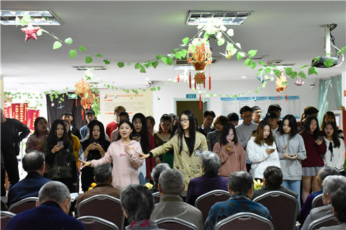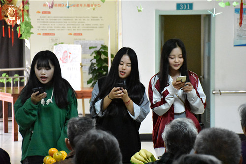 尊老敬老是中华民族的传统美德,作为在校大学生,更应该发扬尊老爱老的优良传统。九九重阳节当天,我院经济与管理系团总支、民用航空系团总支的学生会和志愿者们来到敬老院,看望慰问老人,开展关爱老人的爱心义演。