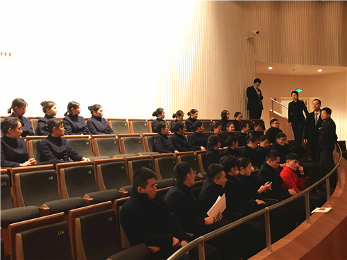 下午,老师们来到江苏大剧院看望航空服务专业的实习学生。江苏大剧院的胡总经理带领老师们与正在参加培训的实习学生们见面,介绍了学生们的不同岗位与分工,大剧院的领导对我院的实习学生表现赞不绝口,对学生们的专业素养和吃苦耐劳的精神给予高度评价。并对个别表现特别优秀的学生提出了表扬。学生们也积极向老师们汇报了自己的实习经验与工作经历,感谢老师们对他们的关心。