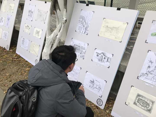 11月28日,我院艺建系于紫藤长廊举办了2016级环境艺术设计专业《建筑环境测绘写生》汇报展。展览吸引了众多观展嘉宾:学院领导、教师、学生及在我院参加培训的社会人士。本次展览共展出作品60幅,作品惟妙惟肖,给人强烈的艺术感染力:大家观展无不拿出手机拍照留存。