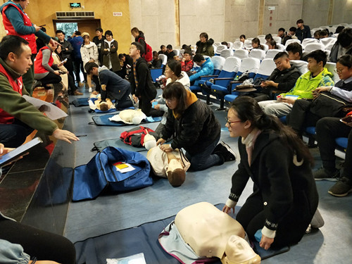 为倡导“人人学急救,急救为人人”的人道理念,推动红十字群众性应急救护知识技能普及,我院红十字会携手雨花台区红十字会为我院480余名青年志愿者进行红十字救护员持证培训。培训于12月1号2号两天在报告厅举行。