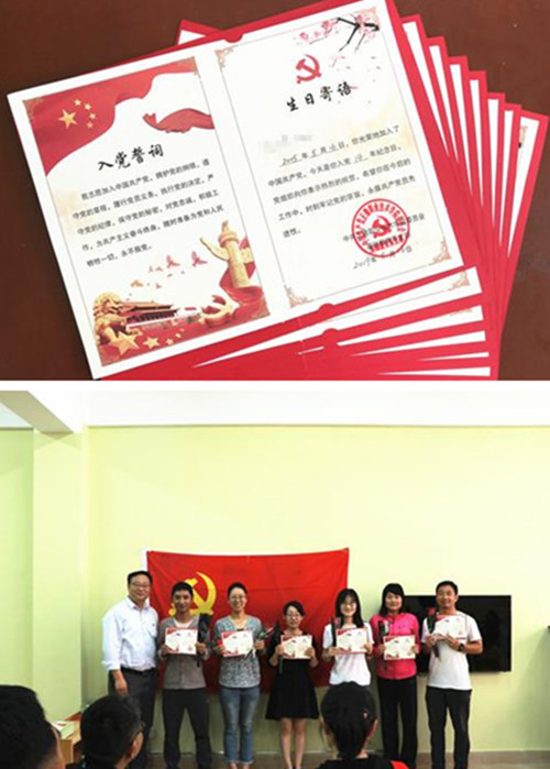 杨卫东首先代表系党支部为在五六月份入党的教师郑重颁发党员政治生日贺卡,集体庆祝政治生日。付江平等六位教师依次上台接受贺卡,学生入党积极分子为老师们献上鲜红的玫瑰花。