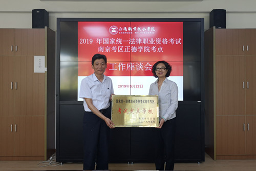由于我院对国家司法考试工作做到了领导重视,组织严密,保障有力,受到南京市司法局等合作单位的好评。为保证国家司法考试考点的稳定性、长远性、安全性,南京市司法局将我院确定为定点考点,并于2019年5月22日上午举行了授牌颁发仪式。