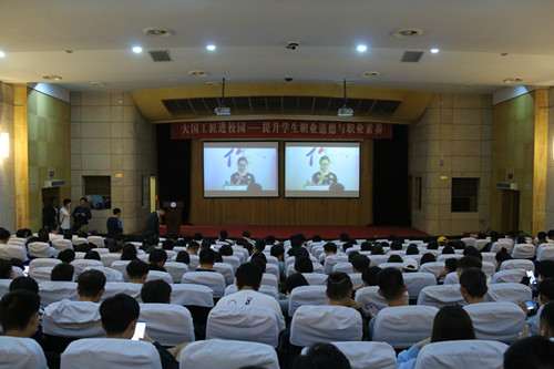 为进一步传承和弘扬工匠精神,提升学生职业道德与职业素养,加强优良学风建设,10月23日晚,我院在报告厅举办“大国工匠进校园——提升学生职业道德与职业素养”活动。学生处副处长毛茂、团委书记祖国与各系学生代表300余人参加本次活动,活动由祖国主持。
