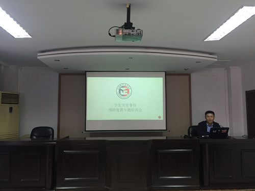 保卫处处长包毅从易发突发事件类型、上学年我院发生的突发学生事件、如何预防学生突发事件的发生及突发事件发生后如何正确处置四个方面为全体学工干部做了专题培训,要求辅导员做好日常的安全教育和重点防范工作,在学生活动中经常性带入安全教育,加深学生认知,强化学生的安全意识,引导学生自我爱护、自我保护。