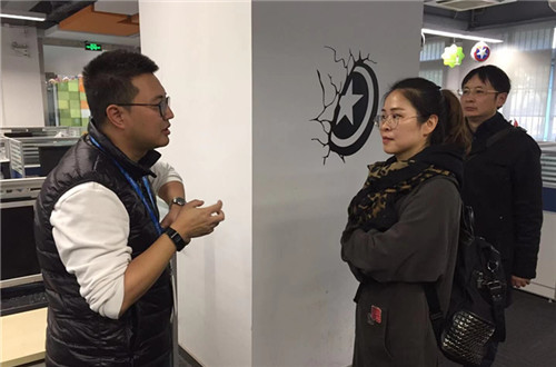 苏宁人事部经理黄季霖热情地接待正德一行。他首先带领大家参观苏宁客服大厅。双十一刚过,客服工作量非常大。经济与管理系的实习学生正在耐心细致地通过网络平台或者电话和客户沟通,回答相应问题。据客服中心领导介绍,我院学生在此次的顶岗实习工作中,成绩斐然,是所有在苏宁实习的各职业院校学生中表现最好的,其优点突出表现在:领悟能力强,职业素养好,勤学好问,善于人际沟通。目前,已经有几位同学被列入骨干队伍培养。