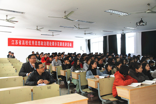11月19日下午,江苏高校优秀思政课示范课巡讲活动专家成员,南京铁道职业技术学院马克思主义学院院长杨晓慧走进我院,为我院学生上了一堂生动的教学示范课。院党委书记江国华,教务处处长王俊、基础教育系主任杨卫东、副主任任志远及部分思政教研部老师到场观摩了示范课。