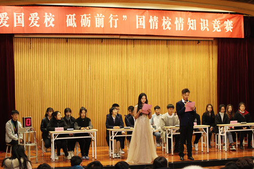 决赛中,各代表队参赛选手沉着冷静、勇于争先,一题一题争,一分一分赶,场面紧张而激烈,每一次精彩答题都赢得了评委和观赛同学的热烈掌声,现场同学也受到了一次很好的国情校情教育。