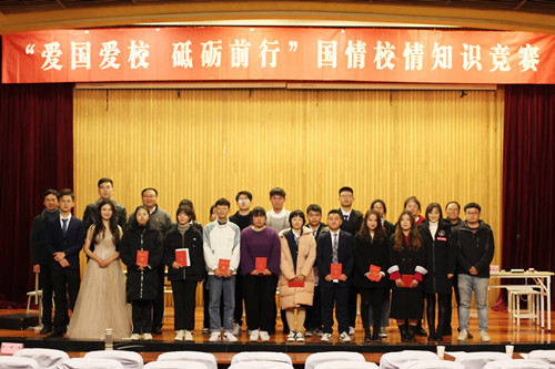 12月19日晚,我院举行“爱国爱校 砥砺前行”国情校情知识竞赛决赛。经过必答题、抢答题、风险题三轮比拼,最终汽车工程系获得第一名,民用航空系获得第二名,基础教育系、艺术设计与建筑工程系并列第三名。