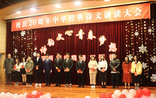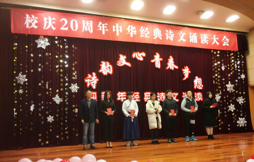 12月25日下午,我院举行“诗韵文心 青春梦想”中华经典诗文诵读大会。国家级普通话水平测试员、电视台资深主播周敏燕教授,学生处处长李秀成、副处长祖国及基础教育系汪小艳副教授担任评委。基础教育系主任杨卫东出席活动,各系学生代表到场观摩。