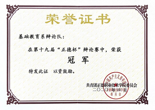 为在“停课不停学”期间丰富同学们的课余生活,活跃线上校园氛围,展现正德学子朝气蓬勃、积极向上的精神状态,提高同学们在团队合作、逻辑思维、言语表达、临场反应等方面的综合素质,我院团委举办线上第十九届“正德杯”辩论赛,经过近两个月初赛、复赛、决赛的激烈角逐,最终基础教育系代表队获得本次辩论赛的冠军。