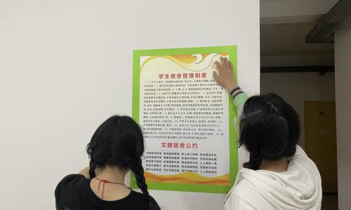 本次活动在宿舍大厅和厕所中分别粘贴上了宿舍管理制度及公约和便后冲水的告示,时刻提醒学生们要遵守宿舍规章制度,建设文明宿舍,同时也让学生们要注意宿舍干净卫生整洁,为宿舍生活提供良好的环境。
