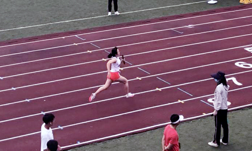 周心彤在女子4×100米冲刺