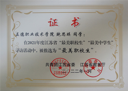 为深入学习贯彻习近平新时代中国特色社会主义思想,紧紧围绕立德树人根本任务,发挥先进典型的示范引领作用,引导广大青年学生坚定理想信念,站稳人民立场,练就过硬本领,投身强国伟业,团省委、省教育厅于2021年7月联合下发了《关于开展2021年度全省“最美职校生”“最美中学生”寻访活动的通知》(团苏委电【2021】9号)。经院团委推荐,团省委与省教育厅审核,我院电子与信息技术系吴凡获评2021年江苏省“最美职校生标兵”,基础教育系卞鑫莉、汽车与机电工程系鲍思琪两名同学获评2021年江苏省“最美职校生”。