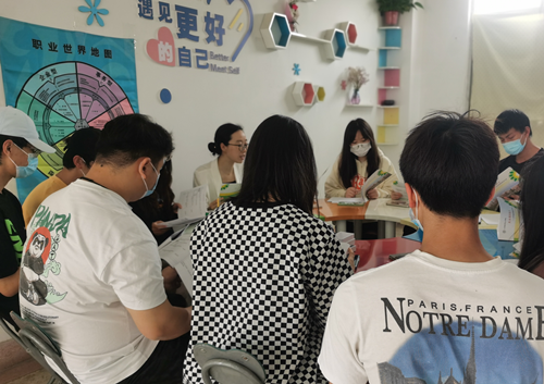 为了帮助同学们更好地了解自己的兴趣、性格、能力、价值观等与职业相关的个人特质,促进他们不断探索未来职业生涯发展的目标,提升生涯发展与生活适应能力。我院学生处大学生心理健康教育中心于5月24日12点30分在2403活动室开展了“探索自我,对话未来”职业生涯团体辅导活动,本次团体辅导活动由心理中心傅蕴男老师主持,共有来自于各系的16名同学参加。