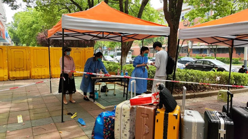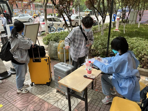 5月7日,我院117名南京市外考生安全返回校园。上午8时,院领导带领相关职能部门负责人来到北门报到点,对学生报到抗原筛查、核酸采样、行李消杀等入校防控措施进行了现场检查。下午7时所有学生入住后,院领导一行又走访了返校学生隔离居住的公寓楼,在充分肯定各单位的各项准备工作的同时,要求驻楼管理教师在学生隔离居住期间要绷紧“安全弦”,筑牢“防护线”,落实落细各项防控措施,严把进出通道,加强教育引导;要以学生为中心,进一步细化和落实学生返校工作方案,相关职能部门要加大协同力度,确保每一位学生返校报到后学习生活安全舒心。