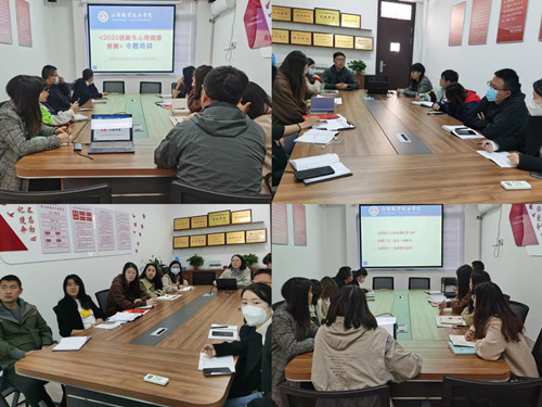 会上,樊荣教师就22级新生心理普查结果分析及心理访谈技能对新生辅导员进行重点培训。培训会从四个方面进行:一是对我院22级新生心理健康状况做了分析和介绍;二是如何解读心理健康测评量表;三是根据评测量表的结果对学生进行评估,并对心理异常的学生进行约谈及其他干预措施;四是建立“特殊学生”的心理档案。